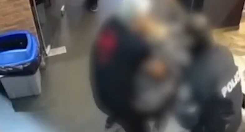 Στο μαγαζί μπαίνει τότε κι ένας αστυνομικός. Αμέσως, χωρίς να χάσει λεπτό, σηκώνει τη γυναίκα από το έδαφος και της κάνει την ειδική λαβή για τον πνιγμό για να φτύσει το κομμάτι που δεν μπορούσε να καταπιεί.
