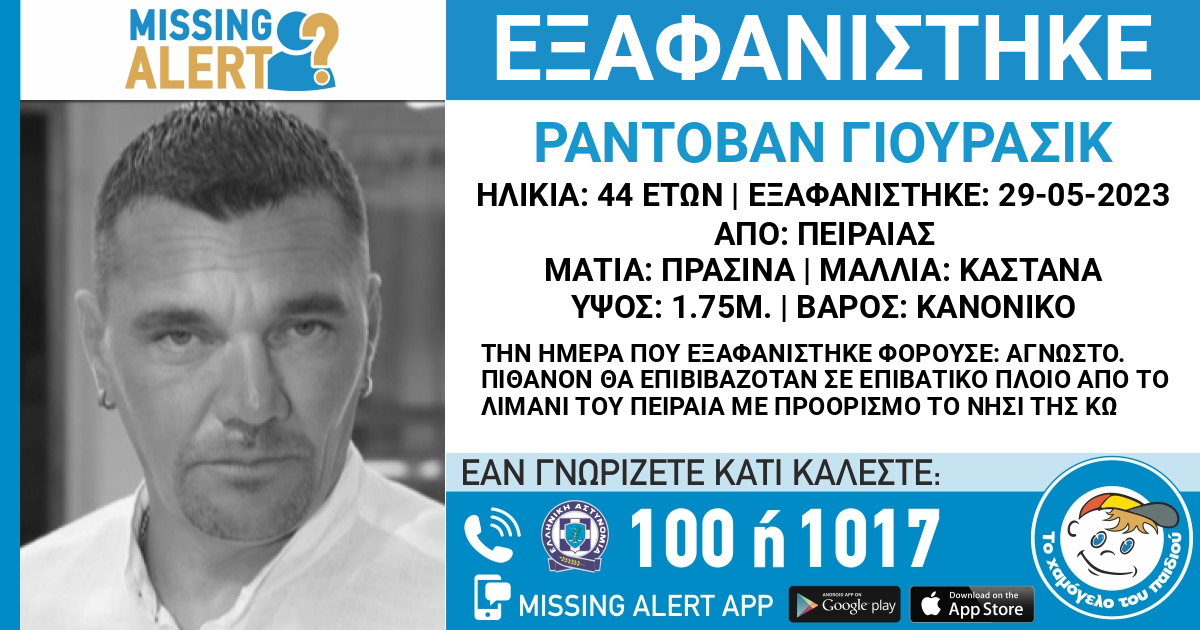 Στις 29/05/2023, εξαφανίστηκε από την περιοχή του Πειραιά, ο Γιουράσικ Ράντοβαν, 44 ετών, υπήκοος της Σερβίας. Στις 28/05/2023, ο Γιουράσικ Ράντοβαν επιβιβάστηκε σε λεωφορείο από την Σερβία προς την Αθήνα με τελικό προορισμό το λιμάνι του Πειραιά. Εν συνεχεία, στις 29/05/2023 θα επιβιβαζόταν σε επιβατικό πλοίο από το λιμάνι του Πειραιά, με προορισμό το νησί της Κω.