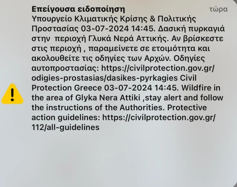 Μήνυμα του 112 που ήχησε πριν από λίγο αναφέρει να παραμείνουν σε ετοιμότητα όσοι είναι στην περιοχή.
