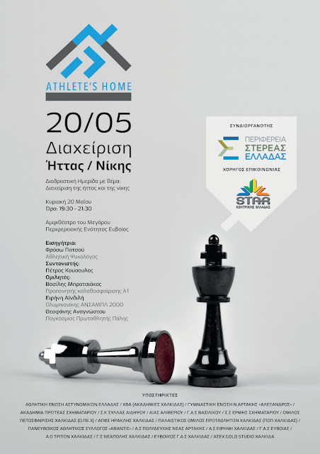 Το «Σπίτι του Αθλητή» έχοντας ως μοναδικό στόχο να σταθεί δίπλα στους Αθλητές, διοργανώνει την 2η ημερίδα με θέμα «Διαχείριση της ήττας και της νίκης». Ένας από τους μεγαλύτερους φόβους τόσο των γονέων όσο και των αθλητών, είναι η αποτυχία σε ένα παιχνίδι. Οι γονείς συχνά αναρωτιούνται «τι να πουν» ή «πώς να αντιδράσουν» σε μια κακή εμφάνιση του παιδιού τους ή της ομάδας και πώς να διαχειριστούν το συναίσθημα του.
