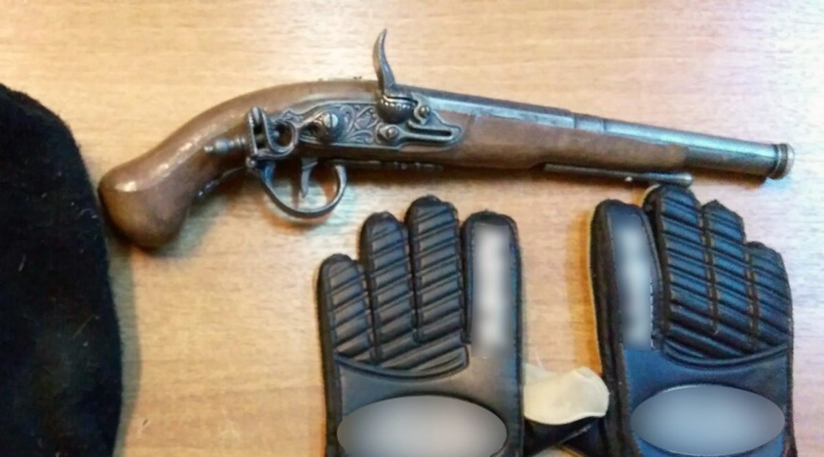 Συνολικά κατασχέθηκαν 1 όπλο (ρέπλικα), 1 ζευγάρι γάντια και 1 περιλαίμιο.