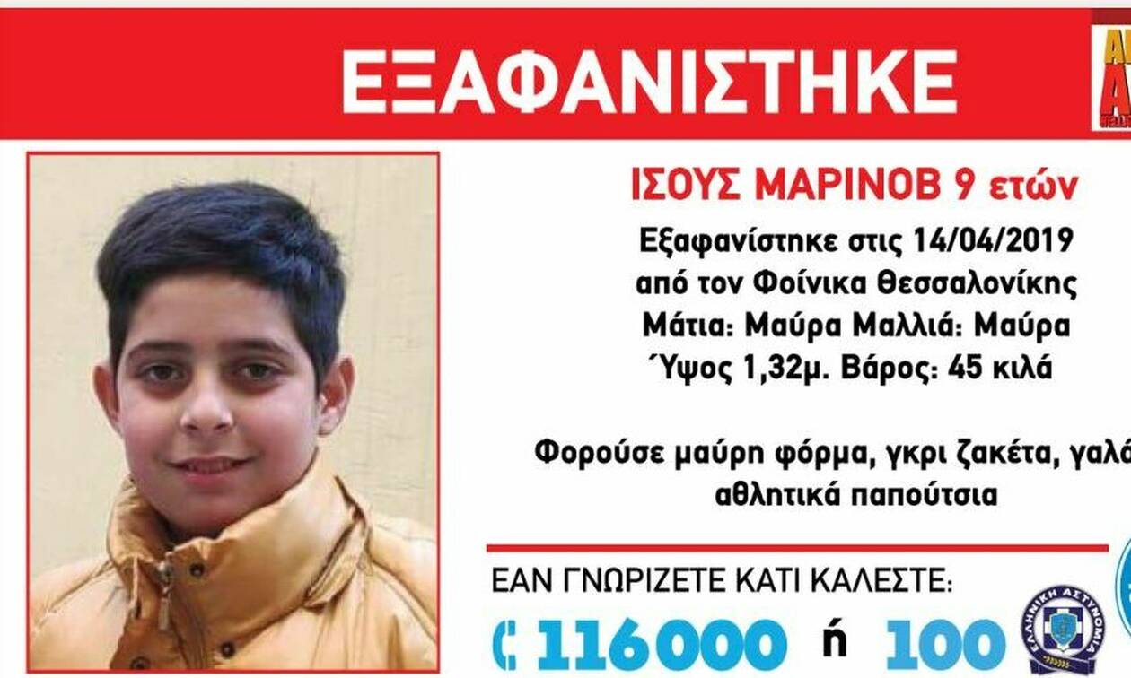 Σύμφωνα με το «Χαμόγελο του Παιδιού, ο 9χρονος Ισούς Μαρίνοβ, εξαφανίστηκε σήμερα, Κυριακή 14 Απριλίου από τη Θεσσαλονίκη.