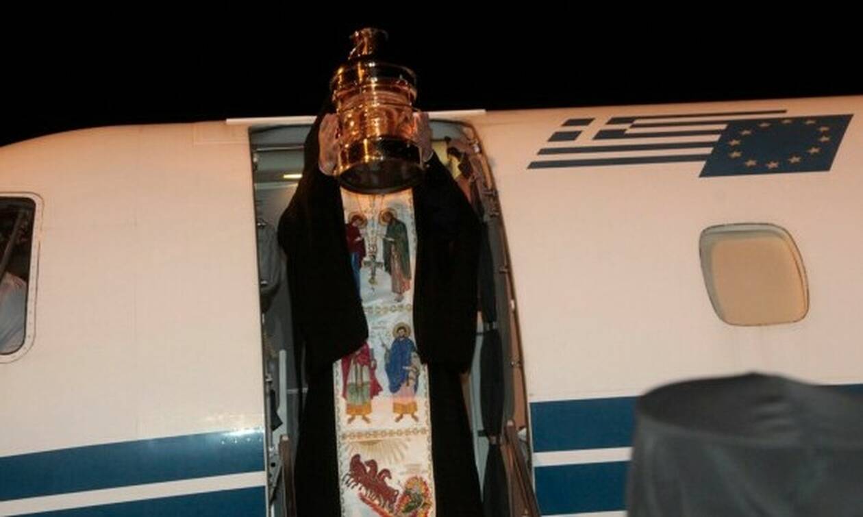 Με κάθε επισημότητα έφθασε λίγο μετά τις 10:40 το Άγιο Φως στο αεροδρόμιο «Μακεδονία» της Θεσσαλονίκης.