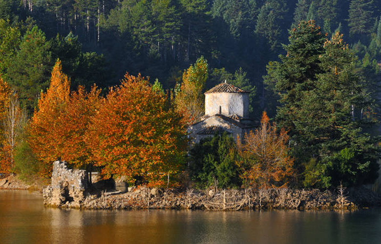 Και μοιάζει το σκηνικό σαν να έχει ξεπηδήσει από πίνακα ζωγραφικής. Πυκνά δάση κοσμούν τα βουνά γύρω από τη λίμνη, ενώ η φύση χαρίζει απλόχερα τα καλύτερα της χρώματα, προσθέτοντας μικρές πινελιές σε αυτό το μωσαϊκό εικόνων.