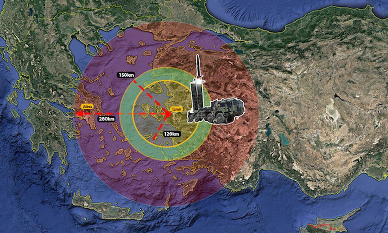 Το δημοσίευμα επικαλείται τις δηλώσεις του Έλληνα πρωθυπουργού Αλ. Τσίπρα ότι «ο ελληνικός στρατός βρίσκεται σε ετοιμότητα για να υπερασπιστεί τα συμφέροντα της χώρας» και τη «συμμαχία» Ελλάδας – Κύπρου για τις γεωτρήσεις στην Αν. Μεσόγειο και αναφέρει αν η Ελλάδα βάλει τρυπάνι στην περιοχή, η Τουρκία θα απαντήσει με πυραύλους από την Σμύρνη. Όπως αναφέρει το δημοσίευμα θα χτυπήσουν ελληνικά νησιά που έχουν πάνω στρατό, βάσεις κι αεροδρόμια, καθώς η εμβέλεια των πυραύλων φτάνει τα 100-120 χιλιόμετρα. Σύμφωνα με τον Τουράν Ογκούζ, η Τουρκία έχει τη δυνατότητα να πλήξει από την Σμύρνη ελληνικούς στόχους σε νησιά του Αιγαίου – ακόμα και στην Αθήνα – με τους πυραύλους SOM and BORA που διαθέτει.