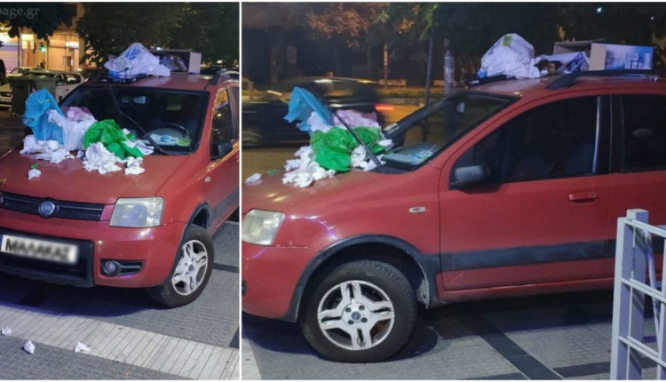 Στη Θεσσαλονίκη ένας οδηγός… παράτησε το αυτοκίνητό του σε πεζοδρόμιο. Όταν επέστρεψε σε αυτό το βρήκε με δεκάδες σκουπίδια πάνω του.