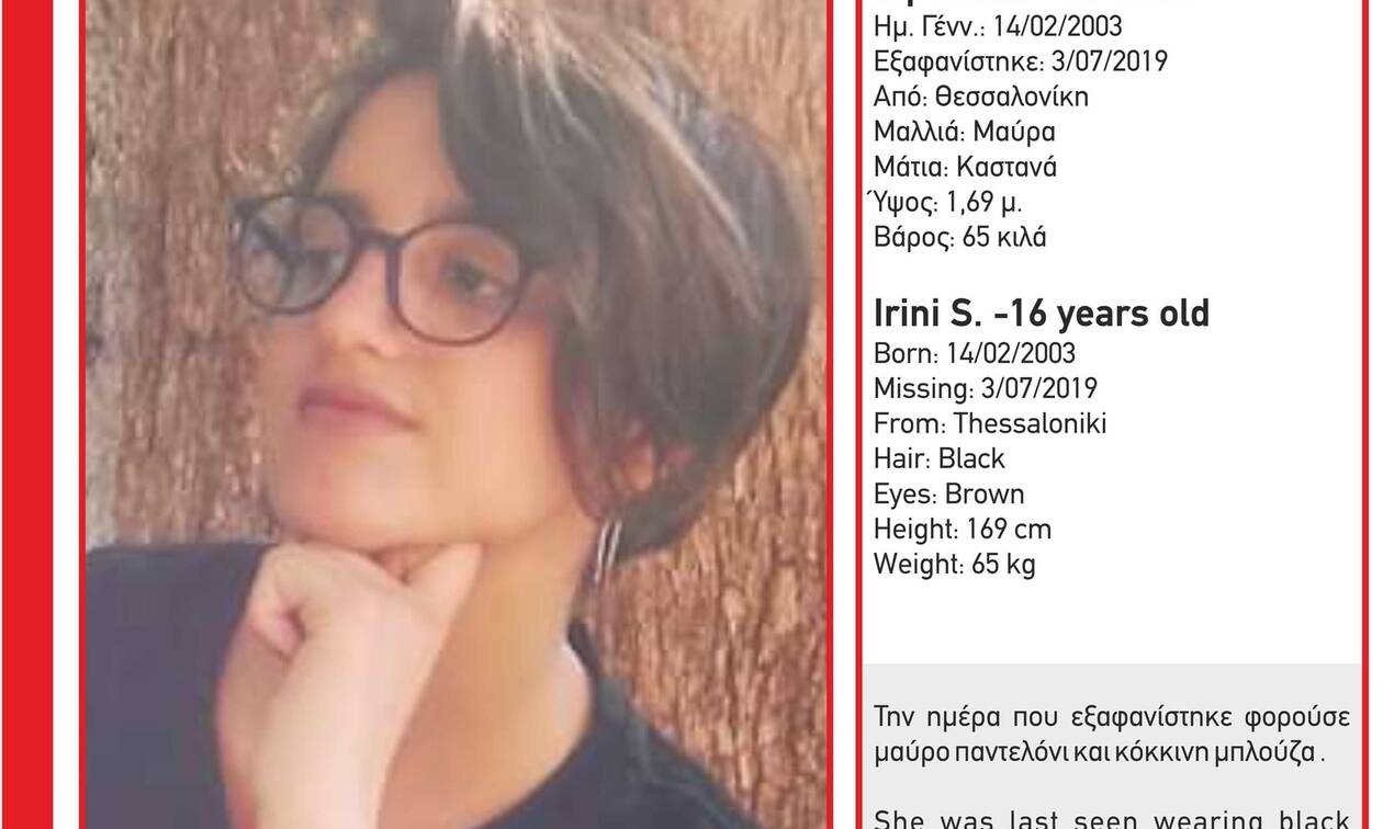 Όπως έγινε γνωστό, στις 03/07/2019, και ώρα 19:30, εξαφανίστηκε η Ειρήνη Σ., 16 ετών. Για την εν λόγω εξαφάνιση, ενημερώθηκε το μεσημέρι της Παρασκευής το Χαμόγελο του Παιδιού.