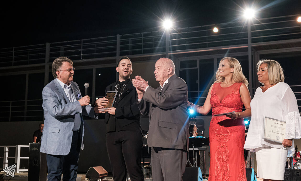 Πριν την έναρξη της εκδήλωσης, την οποία παρουσίασε η γνωστή δημοσιογράφος Χριστίνα Λαμπίρη, ο Σοφοκλής Ξυνής βράβευσε τον σπουδαίο δημιουργό για την 70ετή προσφορά του στην Ελλάδα, τη Μουσική και τον Πολιτισμό, ενώ το ΙΕΚ ΑΛΦΑ τίμησε τον Μαυρίκιο Μαυρικίου για τη δημιουργία της σύγχρονης ορχήστρας «Μίμης Πλέσσας».