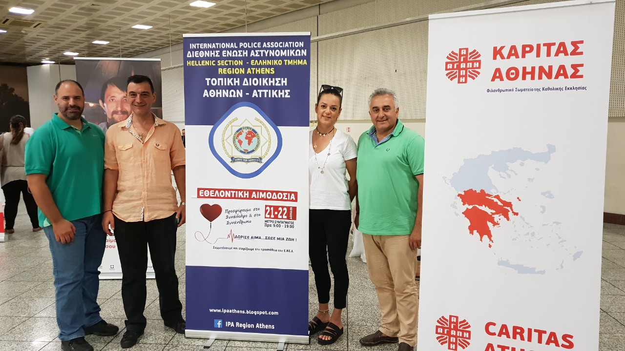 Με μεγάλη επιτυχία στέφθηκε η Εθελοντική Αιμοδοσία στην οποία συμμετείχε και στήριξε η Τοπική Διοίκηση Αθηνών-Αττικής της Διεθνούς Ενώσεως Αστυνομικών που διοργάνωσε το Ε.ΚΕ.Α. (Εθνικό Κέντρο Αιμοδοσίας) την Κυριακή και τη Δευτέρα 21 και 22 Ιουλίου 2019, από ώρα 09.00 έως 20.00 στην αίθουσα πολλαπλών χρήσεων ΜΕΤΡΟ Συντάγματος, στο πλαίσιο της συνεργασίας οι «4 Εποχές της Αιμοδοσίας».