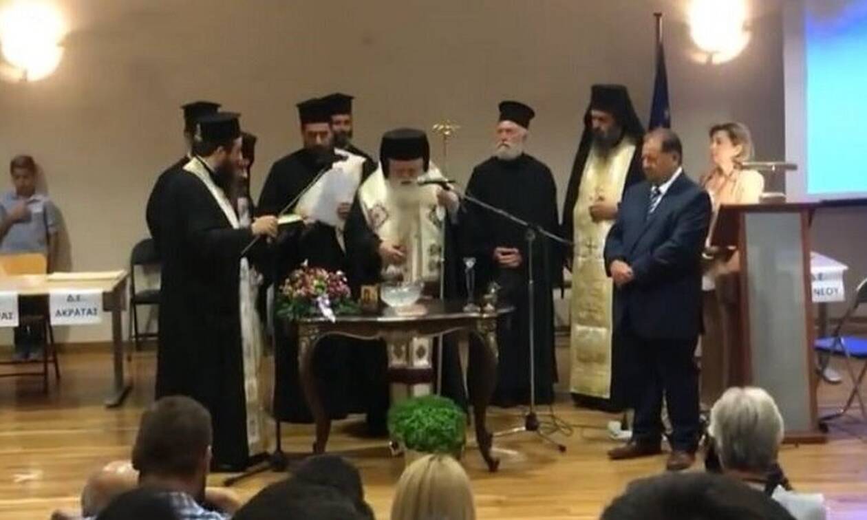 Κατά τη διάρκεια τέλεσης του θρησκευτικού όρκου, το Σάββατο (31/8), ο απερχόμενος Μητροπολίτης, έψαλε το τροπάριο της Υψώσεως του Σταυρού, λέγοντας «νίκας τοις βασιλεύσι», κάτι που προκάλεσε την έντονη αντίδραση του βουλευτή Αχαΐας του ΣΥΡΙΖΑ, Κώστα Μάρκου, ο οποίος τον διέκοψε και τον διόρθωσε, λέγοντας στον Μητροπολίτη ότι το σωστό είναι «νίκας τοις ευσεβέσι»!