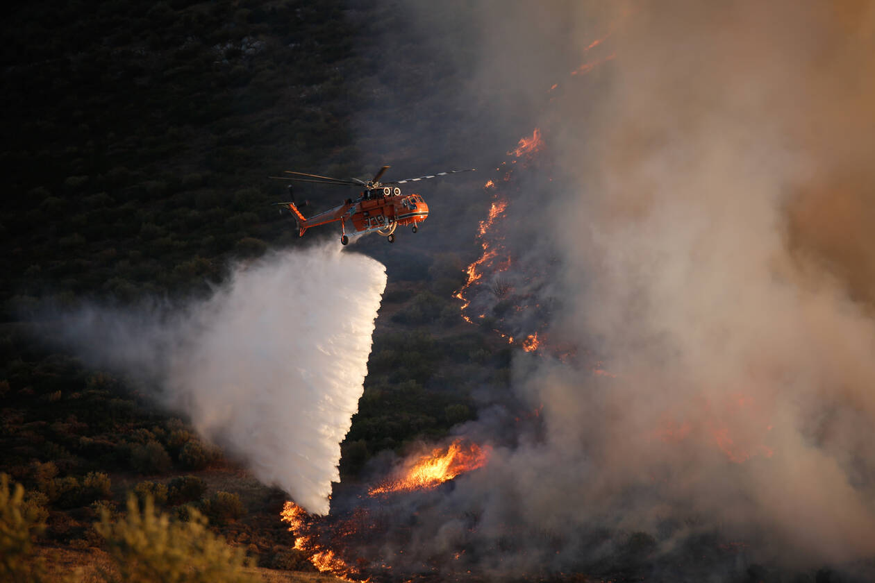 Το σημείο όπου μαίνεται η φωτιά είναι δύσβατο, με αποτέλεσμα οι πυροσβεστικές δυνάμεις να δυσκολεύονται να το προσεγγίσουν.