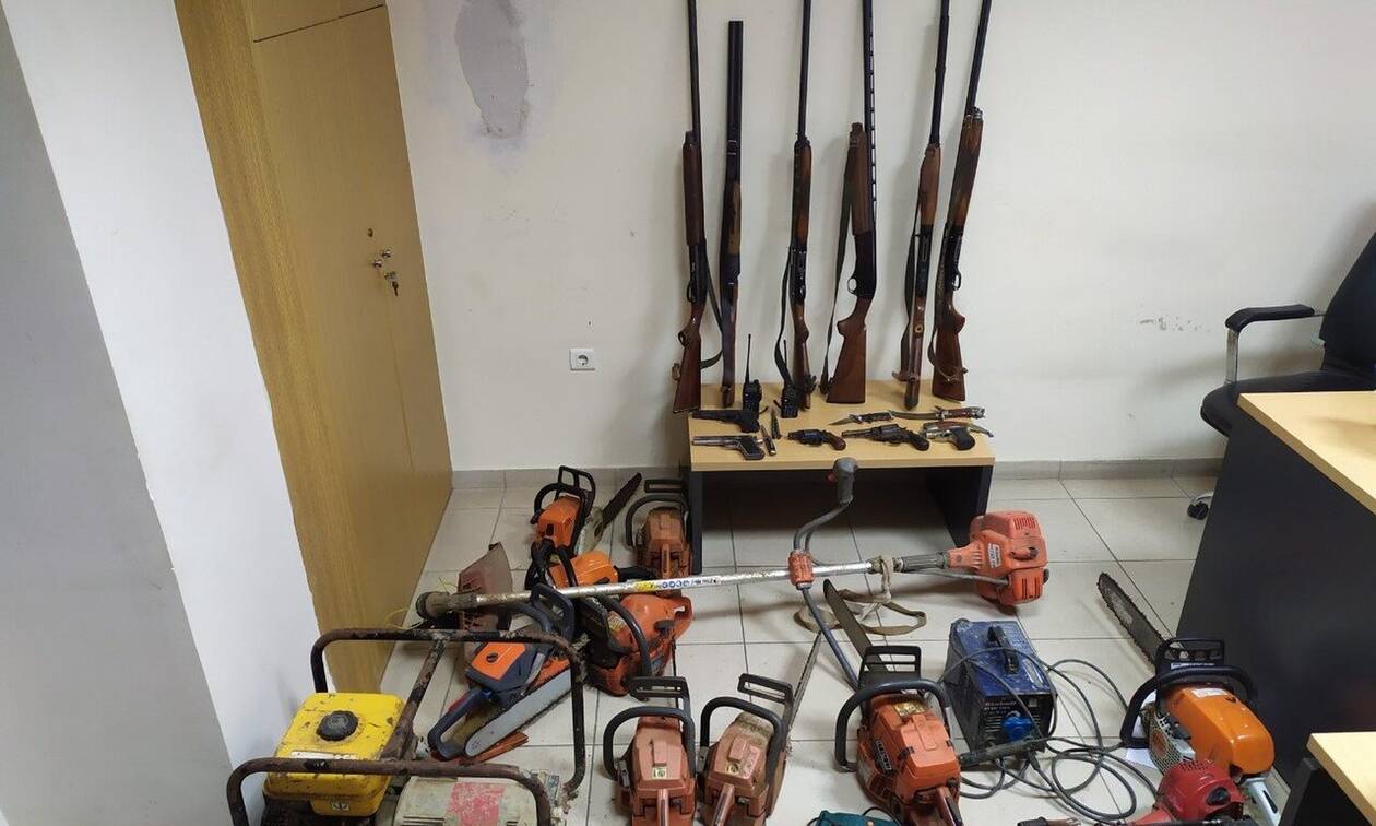 Σε έρευνες που ακολούθησαν, παρουσία δικαστικού λειτουργού, στα σπίτια των συλληφθέντων και συγκεκριμένα στο σπίτι του 26χρονου, του 31χρονου και του 55χρονου, οι αστυνομικοί βρήκαν, μεταξύ άλλων, ένα περίστροφο, ένα περίστροφο τύπου «Replica», τέσσερα κυνηγετικά όπλα, 12 φυσίγγια πυροβόλου όπλου, 16 πυροδοτημένους κάλυκες πυροβόλου όπλου, 14,2 γραμμάρια κάνναβης, επτά δενδρύλλια κάνναβης κ.ά. Στο σπίτι του 35χρονου βρέθηκαν δύο φυσίγγια πολεμικού τυφεκίου, τέσσερα φυσίγγια διαφόρων διαμετρημάτων και τέσσερις κάλυκες πυροβόλου όπλου, ενώ στο σπίτι του 27χρονου οι αστυνομικοί βρήκαν δύο πιστόλια, ένα στιλέτο τύπου πεταλούδα, 11 σφαίρες αβολίδοτες, ένα κυνηγετικό όπλο άνευ αδείας, δύο ασυρμάτους κ.ά.