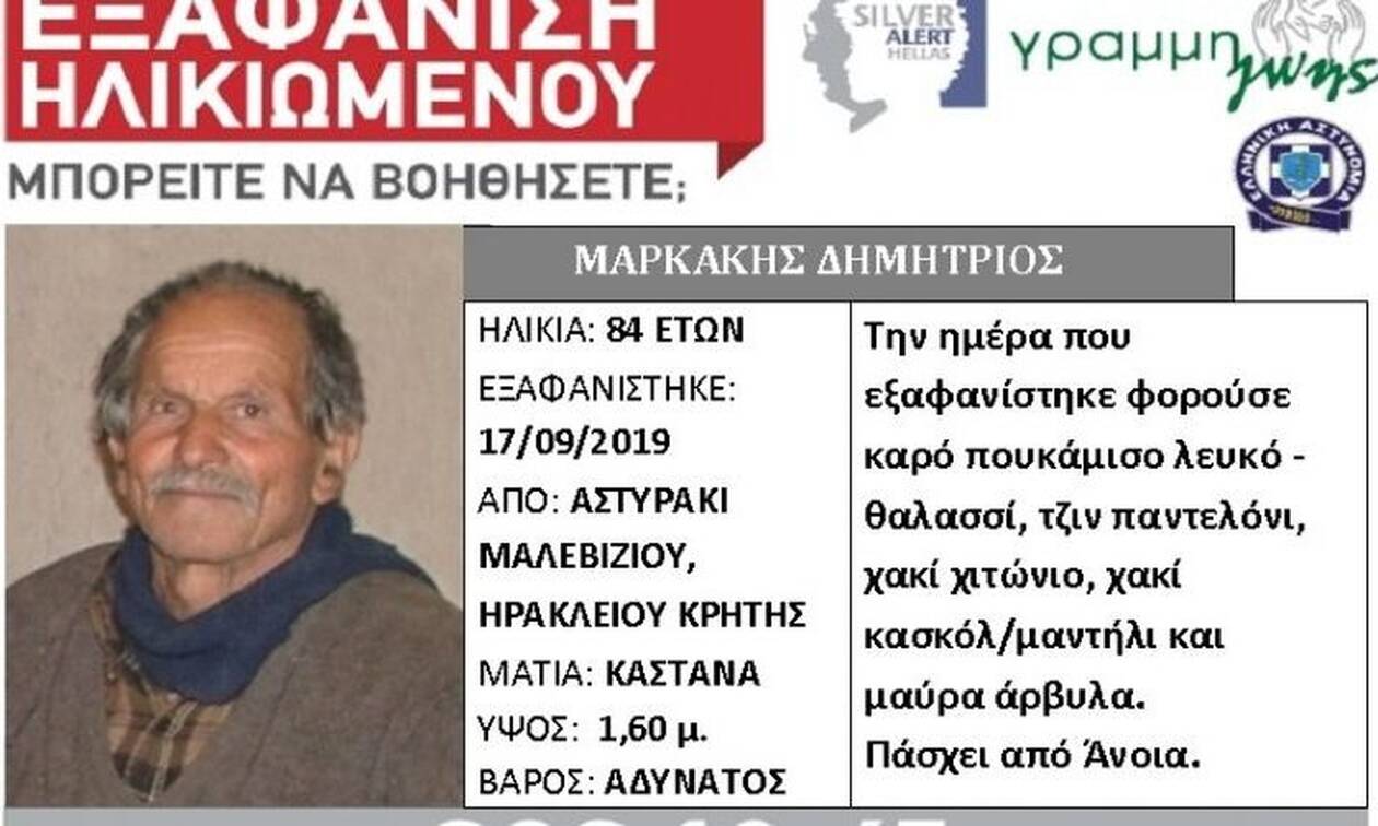 Για τον ηλικιωμένο Δημήτρη Μαρκάκη εκδόθηκε Silver Alert , καθώς πάσχει από άνοια.