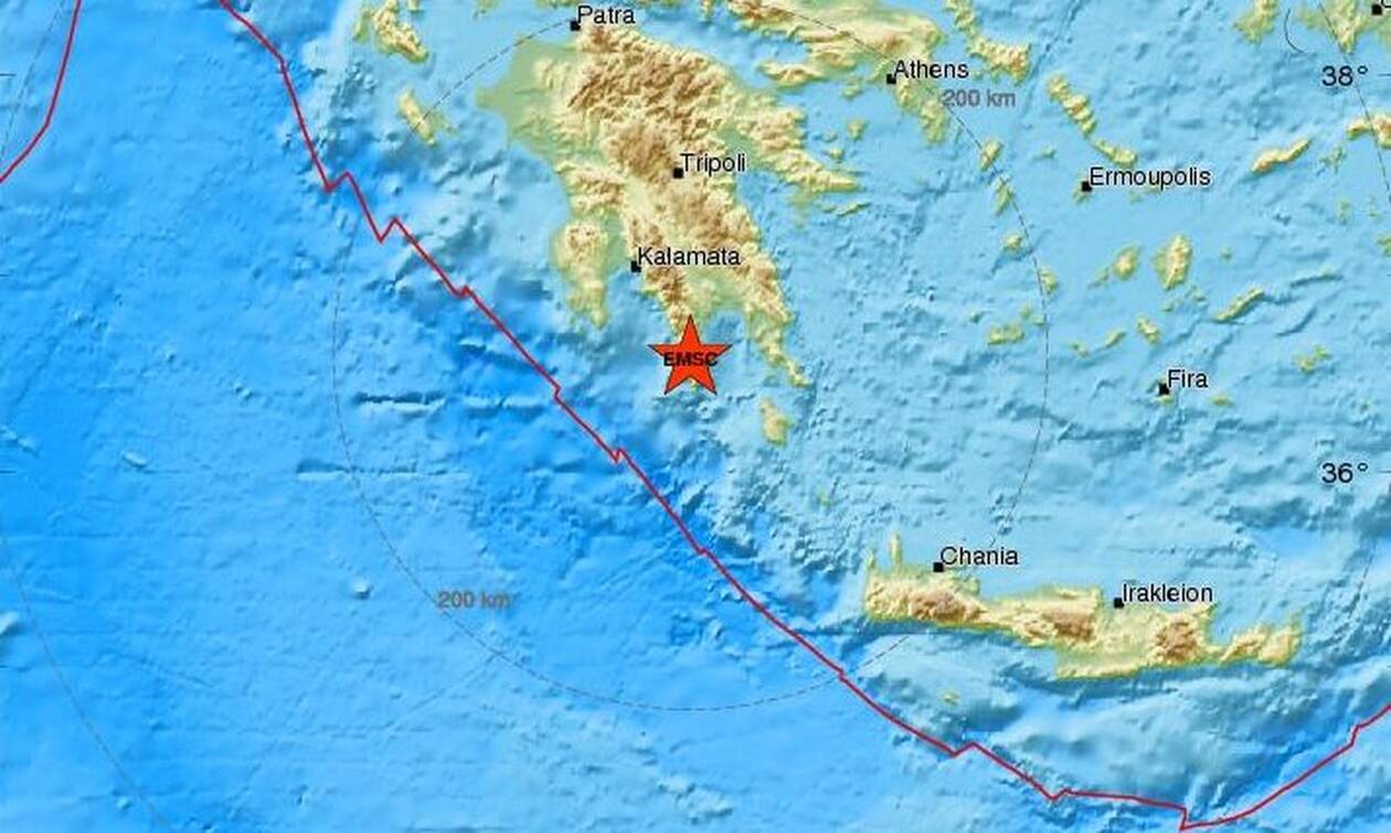Το ακριβές επίκεντρο της δόνησης εντοπίζεται, στα 55 χλμ. νότια της Σπάρτης