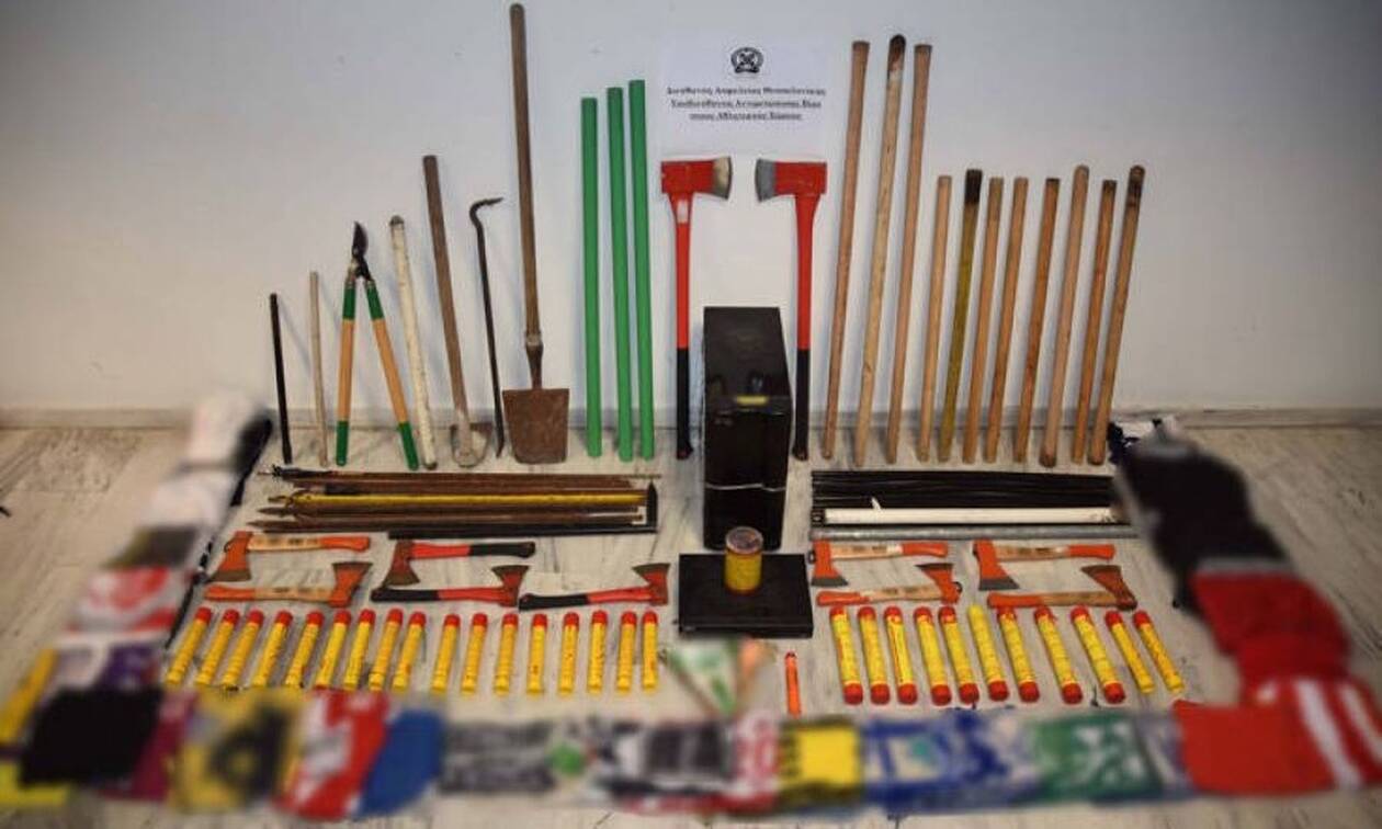 Σύμφωνα με ανακοίνωση της ΕΛ.ΑΣ., από τον σύνδεσμο της Χαριλάου κατασχέθηκαν 16 σιδερένιες βέργες, 11 τσεκούρια, 17 ρόπαλα, 4 εργαλεία χειρός, 30 βεγγαλικά/καπνογόνα, μία μονάδα υπολογιστή και καταγραφικό, πανό, φανέλες και κασκόλ, που έφεραν διακριτικά διαφόρων ομάδων.