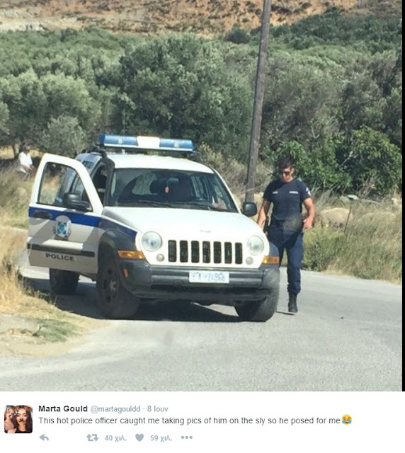Η νεαρή Mάρτα είδε έναν νεαρό αστυνομικό και ξεκίνησε να τραβάει φωτογραφίες. Όταν ο νεαρός αστυνομικός αντιλήφθηκε ότι ήταν ο… πρωταγωνιστής στα καρέ της νεαρής κοπέλας, άρχισε να ποζάρει με αποτέλεσμα όταν ανέβασε τις φωτογραφίες η Μάρτα στο twitter να γίνει ο κακός χαμός από like και retweet.
