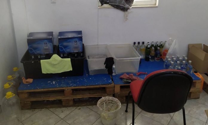 Οι αστυνομικοί εντόπισαν δύο εργαστήρια παρασκευής και νόθευσης αλκοολούχων ποτών στο Καματερό και ένα κοντέινερ-αποθήκη στον Ασπρόπυργο, ενώ συνελήφθησαν εννέα άτομα και αναζητούνται άλλα έξι.