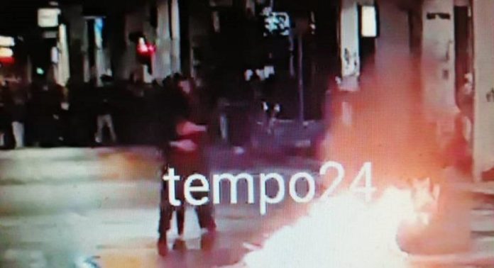 Σύμφωνα με το tempo24 ένα ζευγάρι από ομάδα στην Πάτρα που ανήκει στον αντιεξουσιαστικό χώρο, ξαφνικά απομακρύνεται από το σημείο συγκέντρωσής τους και πλησιάζει έναν φλεγόμενο κάδο στην οδό Κανακάρη, το οποίο είχε στηθεί ως οδόφραγμα.