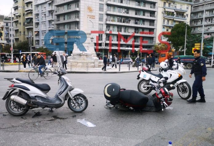 Σοβαρό τροχαίο σημειώθηκε στη Θεσσαλονίκη στη συμβολή των οδών Εγνατίας και Αγγελάκη.
