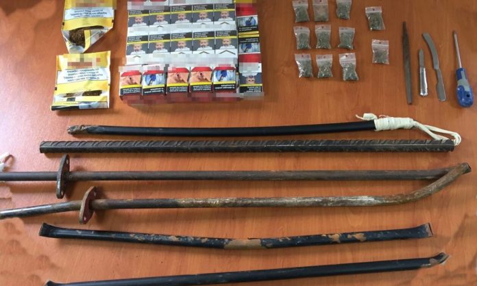 συνελήφθησαν 14 αλλοδαποί, ηλικίας από 18 έως 47 ετών, και κατασχέθηκαν μεταλλικοί ράβδοι, αναδιπλούμενοι σουγιάδες, κατσαβίδι, ποσότητες ακατέργαστης κάνναβης, πακέτα λαθραίων τσιγάρων και ποσότητα αδασμολόγητου καπνού.