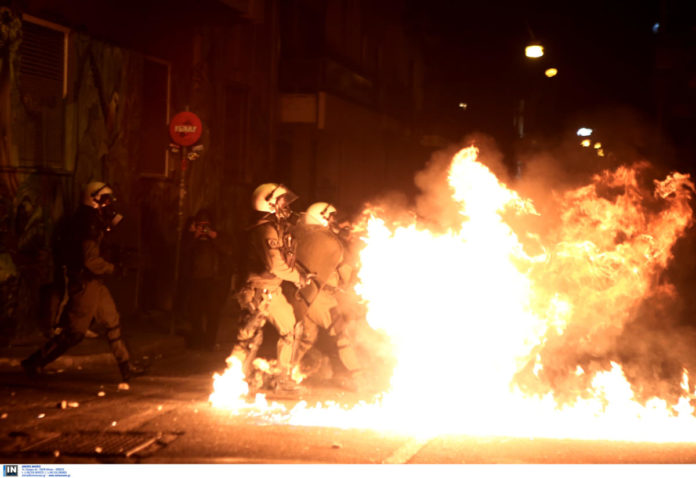 Στα Εξάρχεια τα επεισόδια ξεκίνησαν με τους γνωστούς – άγνωστους να ρίχνουν μολότοφ προς τις αστυνομικές δυνάμεις και να δείχνουν διατεθειμένοι να αμαυρώσουν και φέτος την μνήμη του δολοφονημένου Αλέξανδρου Γρηγορόπουλου.