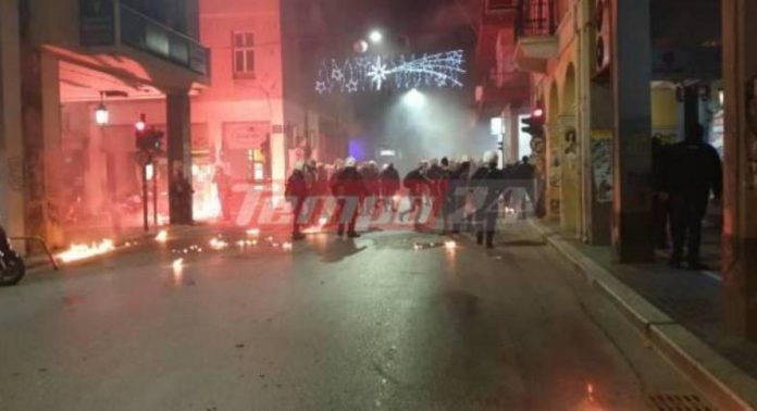 «Πόλεμος» αστυνομίας – αντιεξουσιαστών στην Πάτρα, στο περιθώριο της πορείας στην μνήμη του Αλέξανδρου Γρηγορόπουλου, αργά το βράδυ της Παρασκευής (6.12.2019).