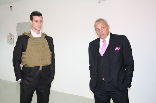 Στη συνέχεια πραγματοποίησε επίδειξη αντοχής στα νέα αλεξίσφαιρα γιλέκα που κατασκεύασε η εταιρεία, καθώς όπως είπε, δεν είναι μόνο οι σφαίρες που μπορεί να απειλήσουν τους Αστυνομικούς, βάζοντας στη θέση του αστυνομικού που δέχεται τα χτυπήματα τον υιό Σούκο.