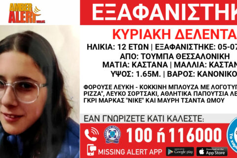 Missing Alert για την εξαφάνιση 12χρονης από την περιοχή της Τούμπας στη Θεσσαλονίκη Στις 05/07/2023 μεσημβρινές...