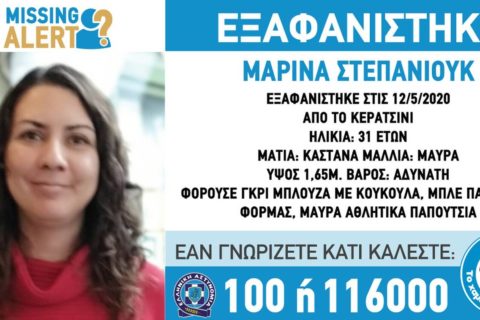 Συναγερμός έχει σημάνει στις Αρχές για την εξαφάνιση μίας 31χρονης γυναίκας από το Κερατσίνι. «Στις 12/05/2020...