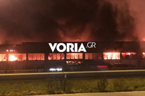 Εθνικής Οδός Θεσσαλονίκης – Αθηνών: Μεγάλη φωτιά σε εταιρεία γεωργικών μηχανημάτων (vid)