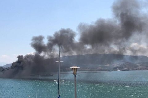 Συναγερμός στο Βόλο: Φωτιά σε σκάφος στην παραλία
