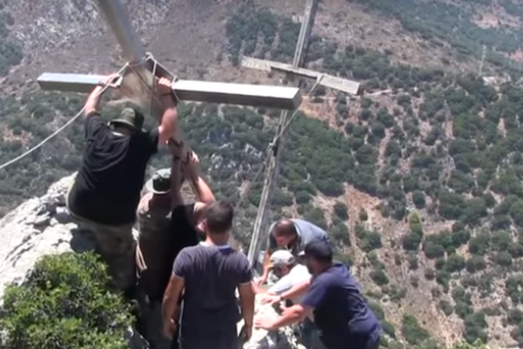 Απίστευτο βίντεο: Ανέβασαν και τοποθέτησαν σταυρό 100 κιλών σε βουνό (vid)
