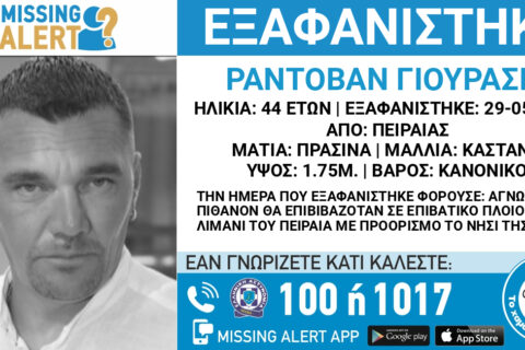 Missing Alert: Εξαφανίστηκε από τον Πειραιά ο 44χρονος Γουρασικ Ραντοβαν Στις 29/05/2023, εξαφανίστηκε από την περιοχή του...
