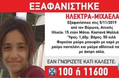 Συναγερμός στις Αρχές: Εξαφανίστηκε η 15χρονη Ηλέκτρα-Μιχαέλα από το Βύρωνα