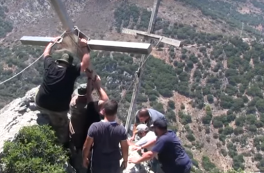 Απίστευτο βίντεο: Ανέβασαν και τοποθέτησαν σταυρό 100 κιλών σε βουνό (vid)