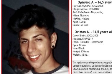 Αγωνία για τον ηλικιάς 14,5 ετών Χρήστο Α. που αγνοείται στην περιοχή του Νέου Μαρμαρά, στη...