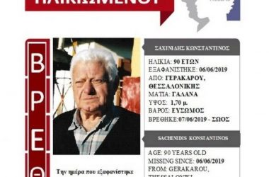Ευτυχώς, σώος βρέθηκε ο Κωνσταντίνος Σαχινίδης τα ίχνη του οποίου είχαν χαθεί στην Γερακαρού Θεσσαλονίκης.  ...
