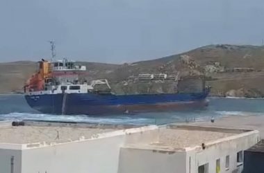 Θρίλερ στη Σέριφο με το «Syros Wind»: Έσπασαν οι κάβοι του πλοίου από τους ισχυρούς νοτιάδες (vid)