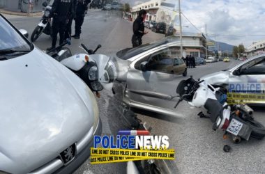 Σφοδρό τροχαίο με τραυματία αστυνομικό της ομάδας ΔΙ.ΑΣ. στο Μενίδι (βίντεο, φωτός)