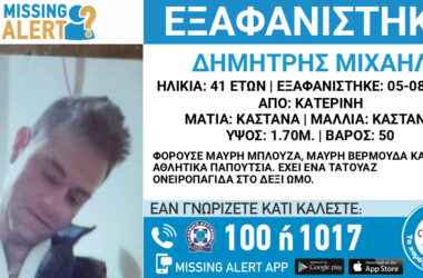 Εξαφανίστηκε 41χρονος στην Κατερίνη – Η ζωή του ενδέχεται να βρίσκεται σε κίνδυνο