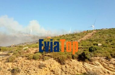 Φωτιά στην Κάρυστο: Συνεχείς αναζωπυρώσεις – Ισχυροί άνεμοι 7 μποφόρ