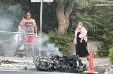 ΤΩΡΑ: Μοτοσυκλέτα πήρε εν κινήσει φωτιά στο Ψυχικό (pics)