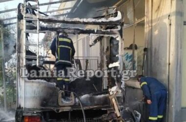 Λαμία: Παρανάλωμα του πυρός τροχόσπιτο – Παραλίγο να καεί διπλανό σπίτι