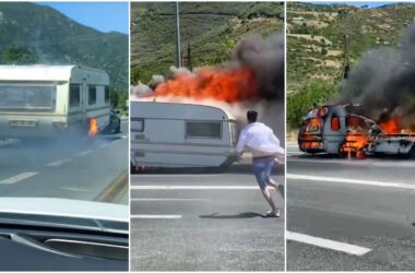 Το φως της δημοσιότητας βλέπει ένα βίντεο ντοκουμέντο από το τροχόσπιτο που άρπαξε φωτιά εν κινήσει,...