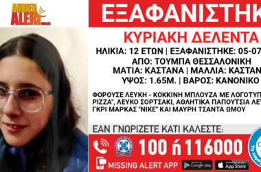 Missing Alert για την εξαφάνιση 12χρονης από την περιοχή της Τούμπας στη Θεσσαλονίκη Στις 05/07/2023 μεσημβρινές...