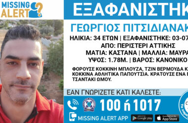 Εξαφανίστηκε ο 34χρονος, Πιτσιδιανάκης Γιώργος από την περιοχή του Περιστερίου και μόνιμος κάτοικος της Κινέτας. Εκδόθηκε...