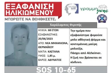 Συναγερμός σήμανε στις Αρχές για την εξαφάνιση 68χρονου στη Θεσσαλονίκη Συγκεκριμένα, πρόκειται για τον Χαράλαμπο Φιριπή,...