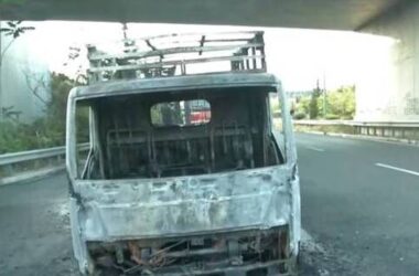 Λεωφόρος Κύμης: Φορτηγάκι τυλίχθηκε στις φλόγες