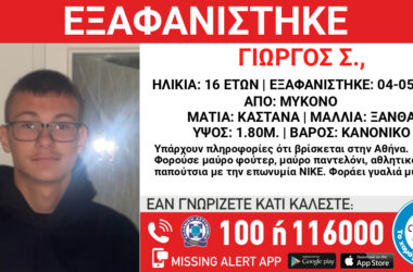 Συναγερμός για την εξαφάνιση του 16χρονου Γιώργου από τη Μύκονο Στις 04/05/2023, στις 14:05, εξαφανίστηκε από...
