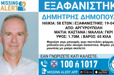 Αργυρούπολη: Εξαφάνιση 58χρονου – Αντιμετωπίζει προβλήματα υγείας